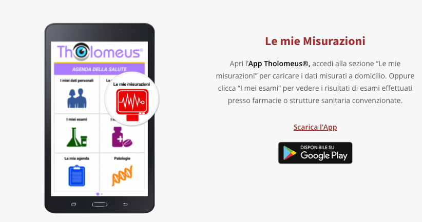 Un vero e proprio telemonitoraggio, certificato con il marchio CE, da effettuare a casa o presso una struttura medica convenzionata con Tholomeus® che consente al medico di ricevere in tempo reale la misurazione effettuata dal proprio paziente per consigliare e suggerire soluzioni immediate.