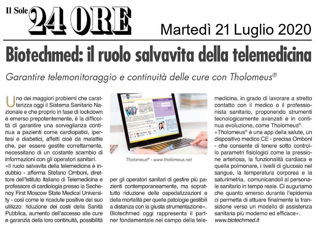 “Il Sole 24 Ore”: «Telemedicina oggi fondamentale. Ecco cos’è Biotechmed»