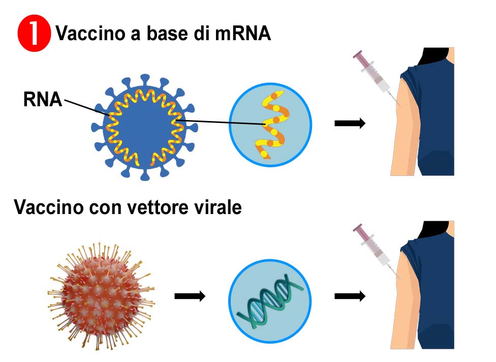La figura mostra come funzionano i due vaccini una volta iniettati nel nostro corpo.